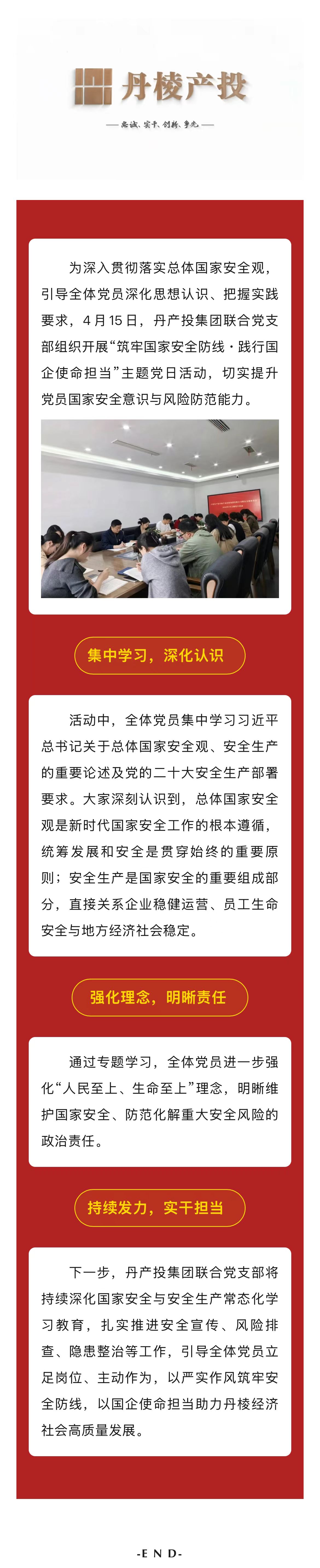 筑牢國家安全防線 踐行國企使命擔當——丹產投集團聯(lián)合黨支部4月主題黨日活動
